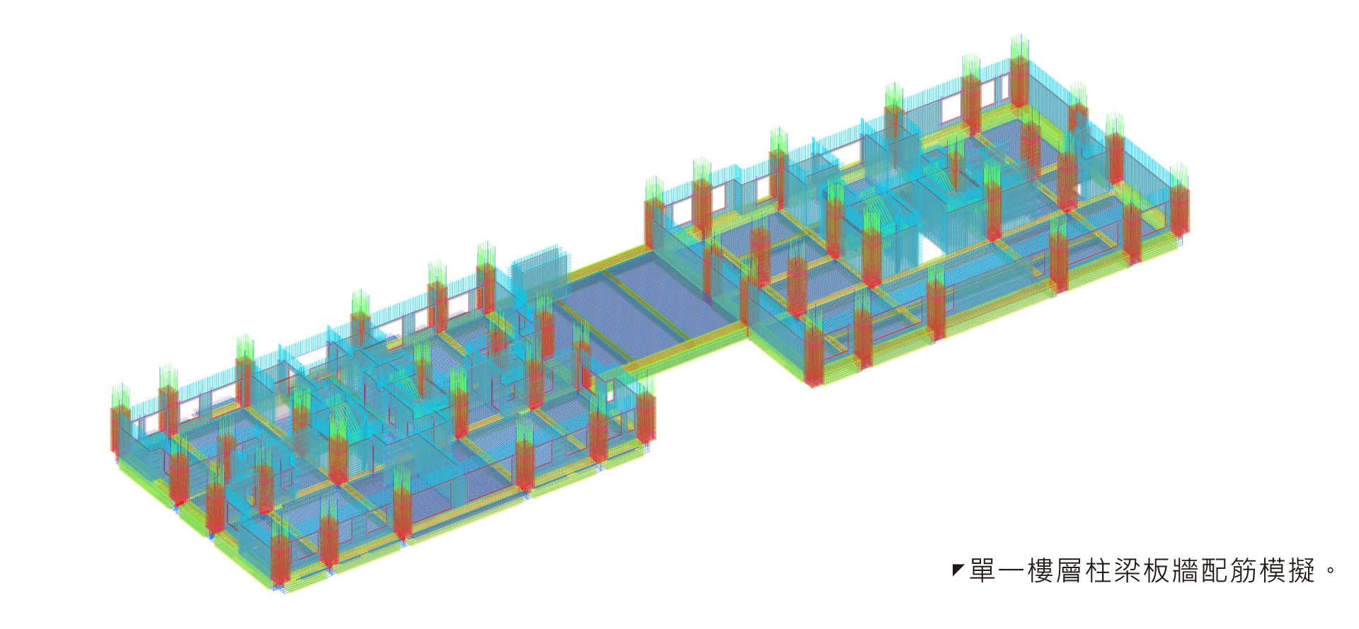 為了確保每一構件都依照設計圖說施作,更是以BIM的技術將每一根構件的鋼筋皆繪製於模型中,讓施工者在真正施工前有一個完整的樣版可以參考,才能夠提高整體的施工品質。