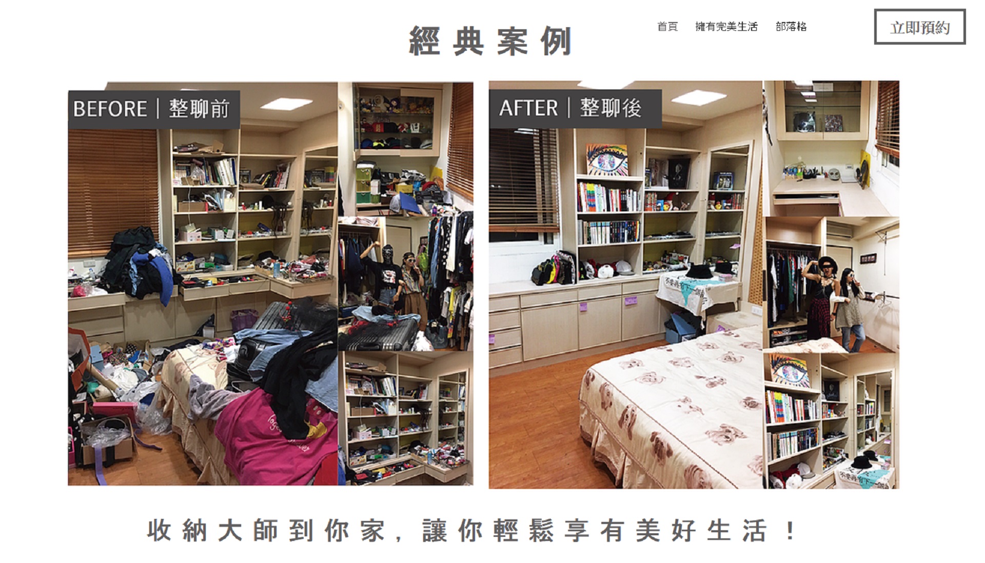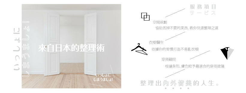 然而,當物品的擴張速度失控,收納技巧再好也沒用,這時得從心理層面重新梳理價值觀。看見這樣的需求,由心理、建築、收納、營養師及精神科醫生等達人組成的台灣年輕團隊「居家整聊室」,提供特殊的居家整理諮詢服務,試著結合整理術、心理學與空間設計,以「到府空間規劃」的形式,透過「整理、聊天」的方式,從旁協助委託者分析什麼是自己真正需要的,依客戶生活習慣更改空間擺設,打造合適每個人的居住空間。