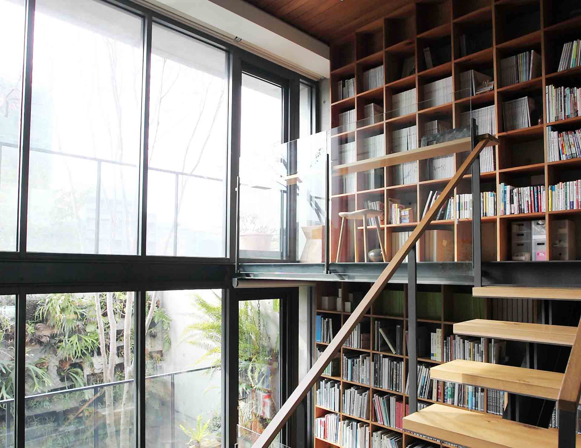 「如果說窗子是室內與室外的連結,那麼書架就是旁人與房子擁有者間的窗,從書架,我們看得到一個人的心,就好像,窺見主人的那扇窗子。」對洪博東來說,書架是屋主展示心靈的窗口。「書架上擺的東西是非常個人性的,我一直鼓勵屋主,要好好運用書架。」
