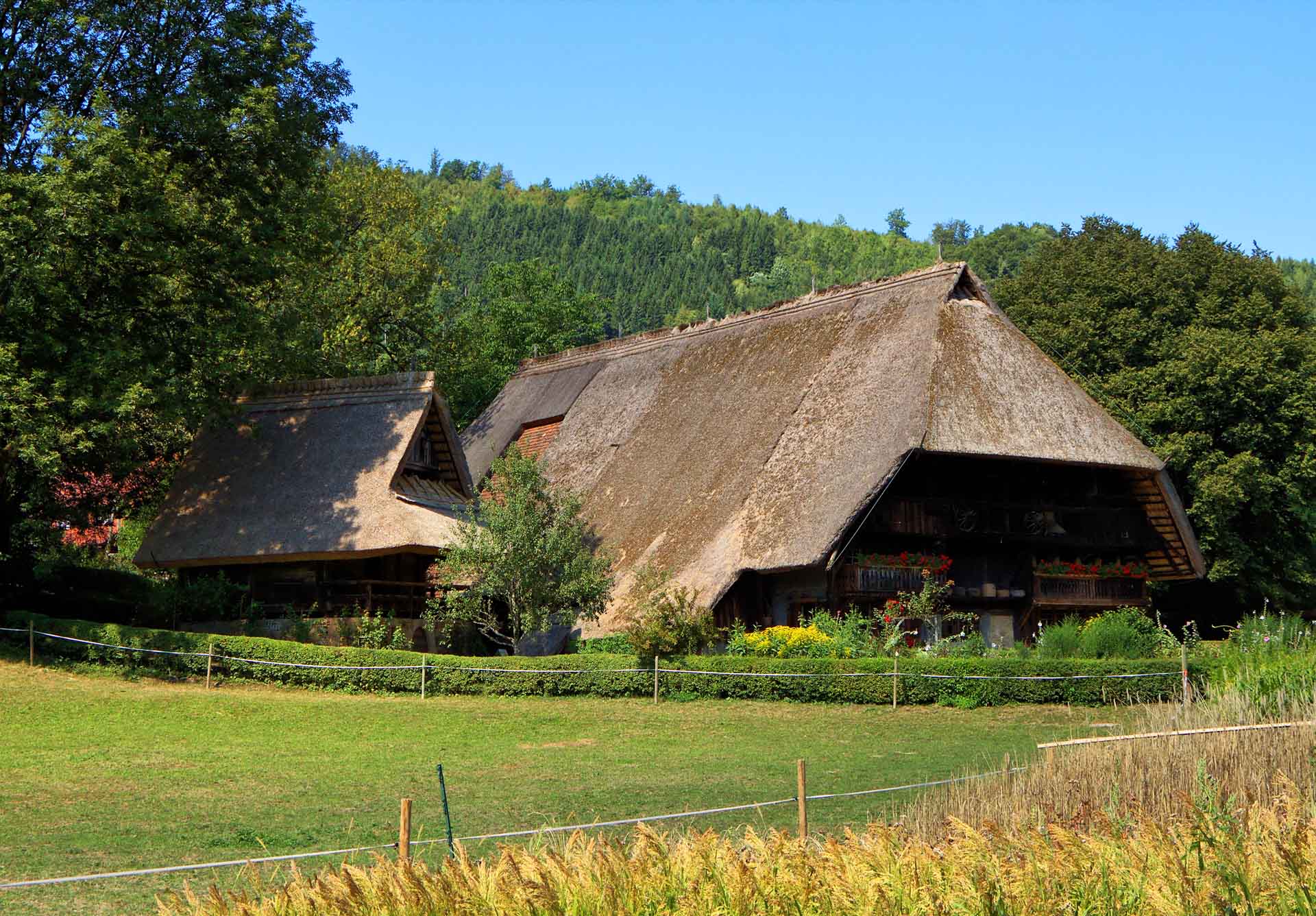 來到德國南部小鎮古赫塔(Gutach),位在此處的黑森林戶外博物館(Schwarzwälder Freilichtmuseum Vogtsbauernhof)保存了最為完整的黑森林農村建築群,有民居農舍、工匠屋舍、磨坊、鋸木廠、倉庫、小教堂、倉儲間等,而那裡頭唯一一座原址保留的古老農舍沃根茲農舍(Vogtsbauernhof)興建於一六一二年,其獨特的木造結構與大草帽般的屋簷,是中部黑森林區民居建築的典型代表。