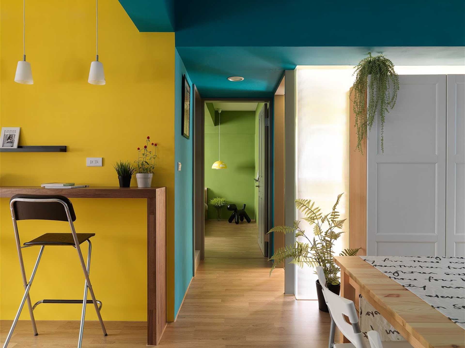 十一日晴空間設計的主持設計師沈佩儀表示,在處理此類空間時,必須要先就格局判斷光線的弱處,進行隔間重塑時,可將收納、牆面、採光一併思考,使牆壁身兼多重功能,更重要是成為傳遞光線的媒介。舉例來說,光線的特性是直線前進、不會轉彎的,但在屋型呈L狀的「Color宅」中,位在房子中央的公共空間處於採光弱勢,因此可利用中島式的電視牆、鑲嵌玻璃的隔間櫃等手法,將周邊採光窗的光線集中到需要加強的區域。