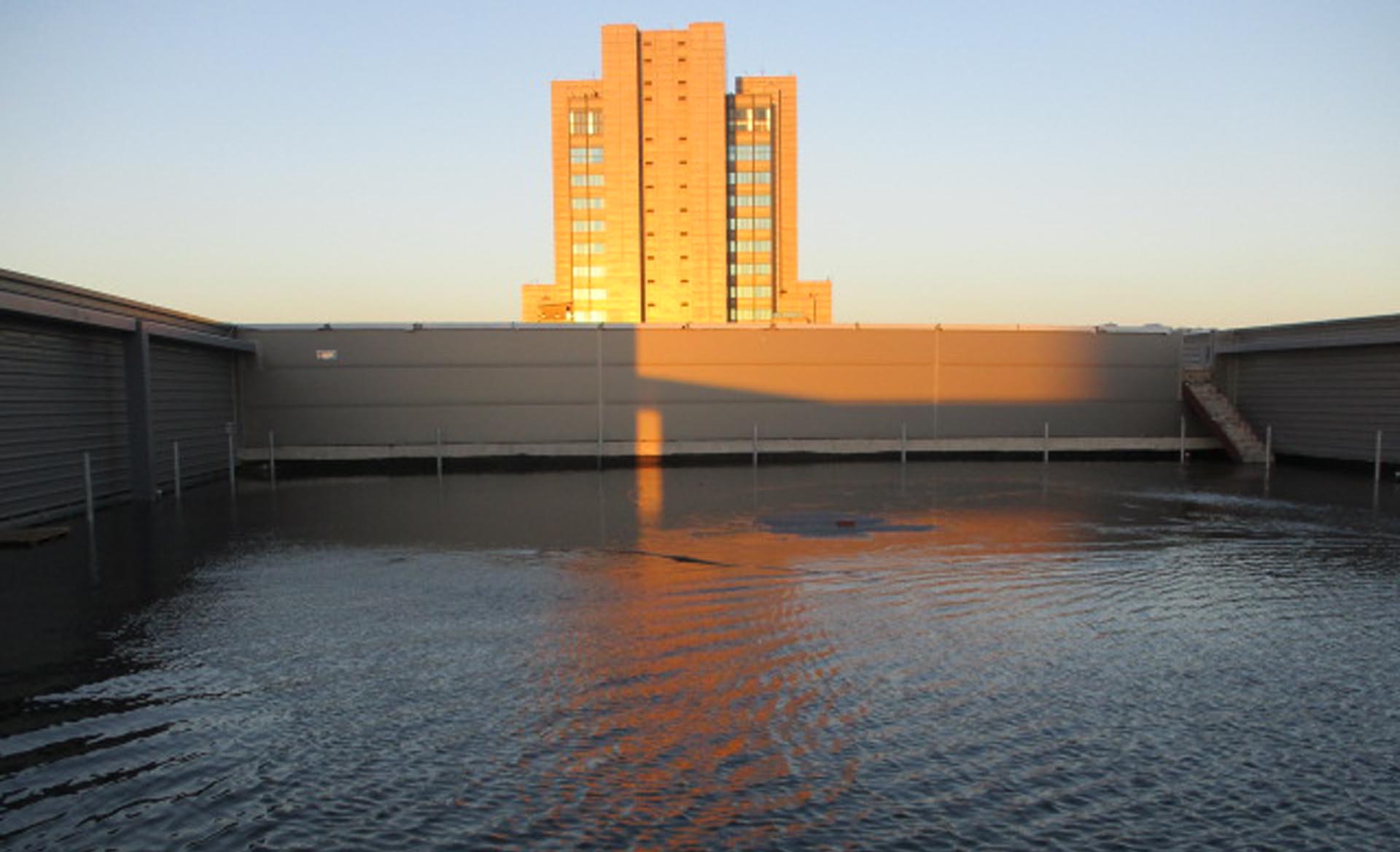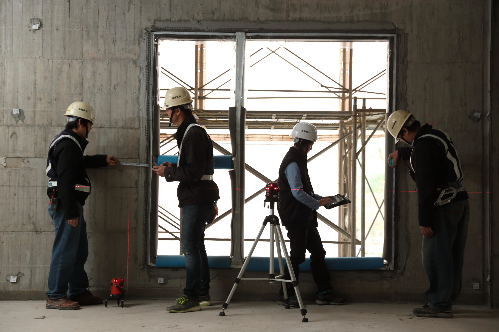 有鑑於此,根基營造在施工之前先從結構去做思考,在室內與戶外做高低差,規劃出洩水(導水)坡度,等混凝土灌漿完溼治養護後,先在屋頂、露臺、陽臺、一樓等面積較大的關鍵性平面部位進行「結構試水」:這個流程是將水放滿、靜置七十二小時,來測試樓版在還沒做防水工程之前會不會漏水,若有漏水就先做初步的止漏動作,讓結構能在完全不漏水的狀態下,再行施做防水工程,這樣設計的好處是即使水穿過防水層,後面還有第二層的結構擋水,便能將漏水機率降至最低。