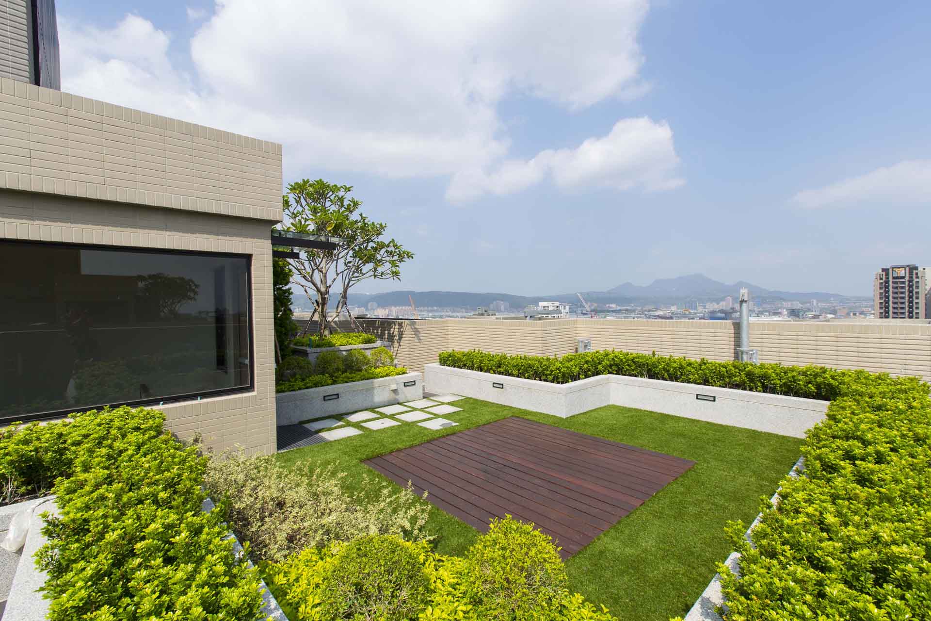 屋頂是建築物中曝露在戶外最大的面積,下雨時直接接觸雨水,若防水規劃設計得不好,頂樓住戶確實最容易漏水!因此,根基營造不斷在防水設計上做研究及改良,針對不同部位,使用相對應的合適防水材料,例如在頂樓使用和日本同等級的「七皮油毛氈」防水材料,以及混凝土地坪洩水計劃、導水板、壓層保護、架高地坪等,藉由層層的施工規劃,力求達到頂樓滴水不漏。