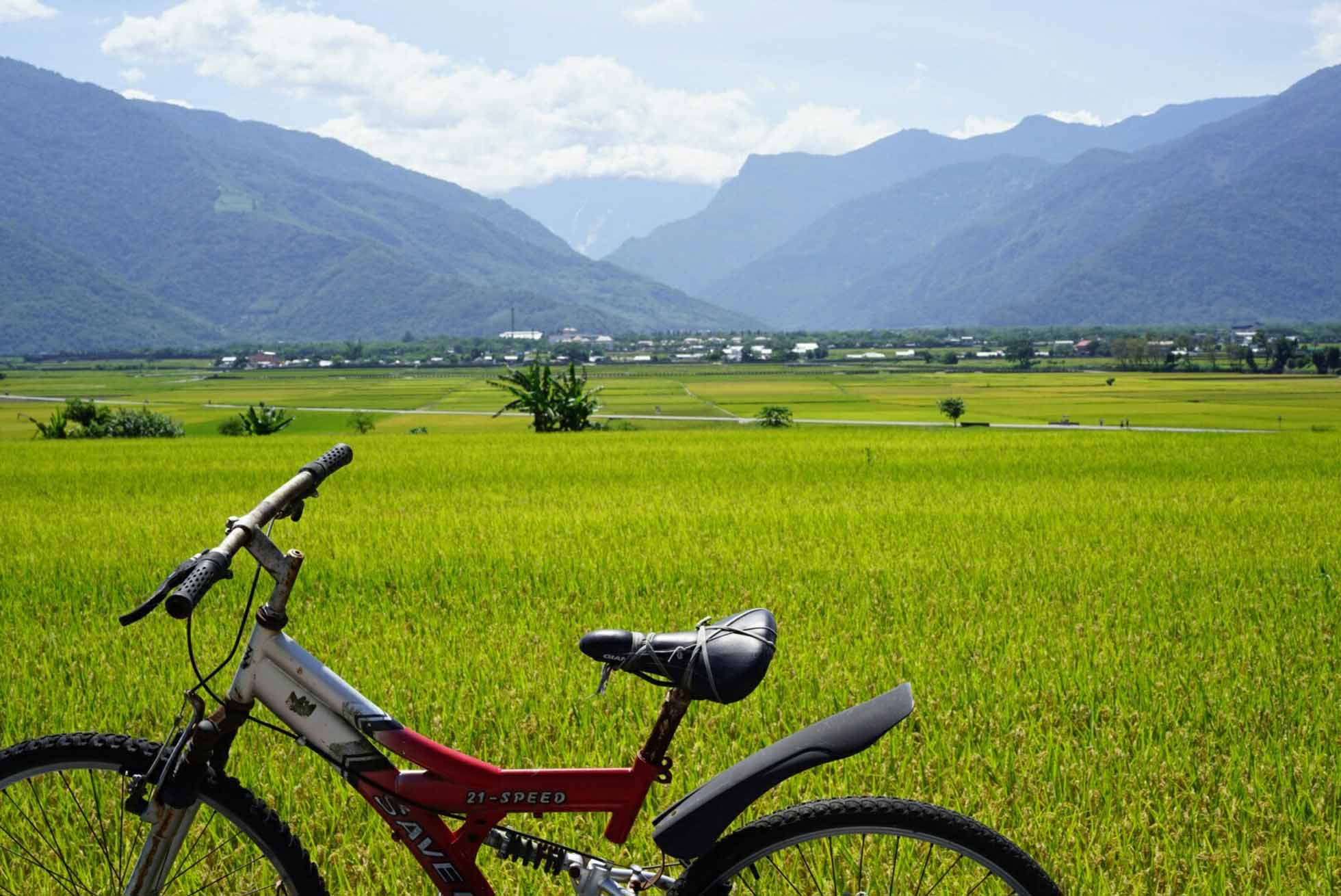 正午抵達稻米原鄉館,放眼望去,黃金稻穗在徐徐微風中形成一波波的稻浪,與蔚藍的天空、山脈交錯著,形成一幅自然美麗的景像,讓人看了心情都開朗起來,拌著新鮮的割稻飯和碗公菜,心裡暗自讚嘆真是一個美好的開始。午后,返鄉青年魏文軒細說池上人因著好山、好水,運用自然的方式,學會和土地一起生活,在天地之間,深耕細作,成就香Q彈牙的池上優質米。他最後說,這裡不只有金城武樹,池上是個看山、看雲、看稻浪的好地方。
